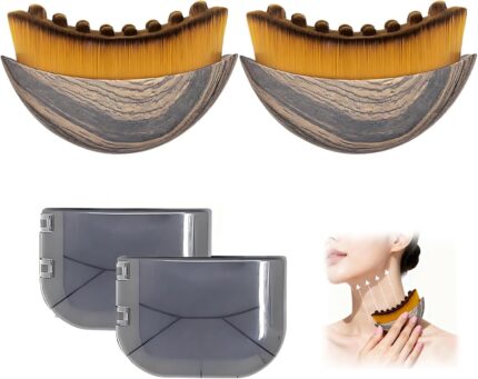 2 PCS Facial Brush Set: Lymphatic Drainage Brush & Contour Brush for Face, Reduces Puffiness & Defines Jawline – Dry Massage Tools