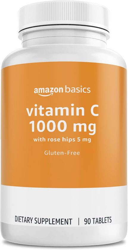 Amazon Basics – Vitamin C, 1000 mg with Rose Hips 5mg, 90 tablets (1 per serving), Gluten Free