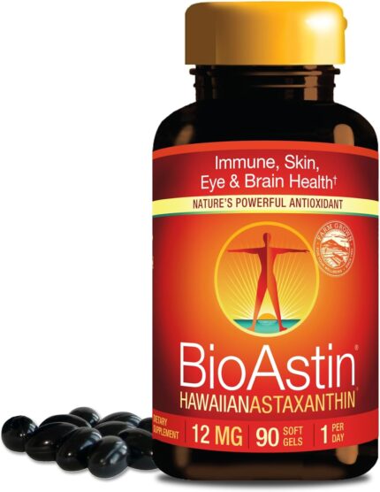 Nutrex Hawaii BioAstin Hawaiian Astaxanthin – 12mg, 90 Softgels – Farm-Direct Premium Antioxidant Supplement to Support Eye, Skin, Joint & Immune System Health – Non-GMO & Gluten-Free