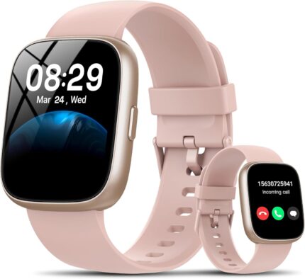 Smart Watch with Alexa Built-in, 1.83″ HD Touchscreen Fitness Tracker with Bluetooth Calling, Fitness Watch with Heart Rate/Sleep Monitor/120+ Sports, IP68 Waterproof Smartwatch for Android iOS, Pink