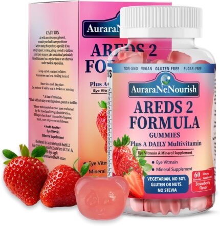 Areds 2 + Advanced Formula for Macular Health, 22-in-1 Eye Vitamin & Mineral Supplement w. Zeaxanthin, Zinc & Vitamin C Supports Eye Strain, Pressure, Night Vision, 60 Chewable Gummies