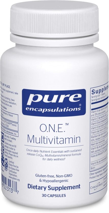 Pure Encapsulations O.N.E. Multivitamin – Once Daily Multivitamin with Antioxidant Complex Metafolin, CoQ10, and Lutein to Support Vision, Cognitive Function, and Cellular Health* – 30 Capsules