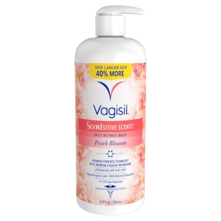 Vagisil Feminine Wash for Intimate Area Hygiene, Scentsitive Scents, pH Balanced and Gynecologist Tested, Peach Blossom, 16.9oz with Pump