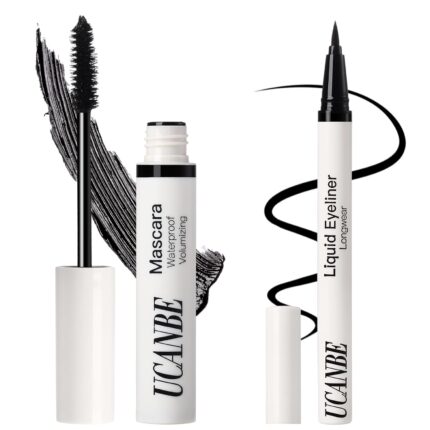 UCANBE Black Mascara and Liquid Eyeliner Set, Waterproof Colored Eye Makeup Duo – Enhance Your Gaze with Natural Lasting Lift & Curl for Lashes and Pigmented Smudge-Proof Eye Liner
