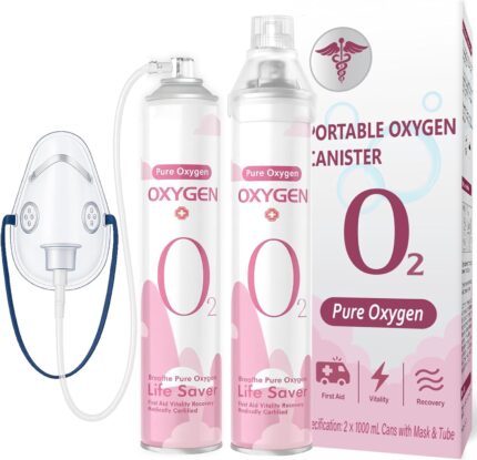 Lightweight Portable Oxygen Canister with Mask & Tube, Easy-to-Use, Travel-Friendly Oxygen Support for Sports, Outdoors & Daily Refresh, 2-Pack (2 × 1000 mL)