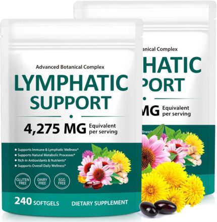 Lymphatic Drainage Supplements, 4275mg Herbal Blend for Immune and Fluid Health for Men Women,with Dandelion, Burdock Root, Echinacea, Turmeric,240 Softgels for Lymph System Balance (Pack of 2)