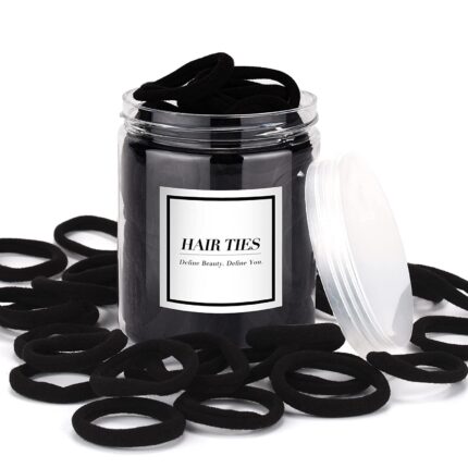 iFwevs 50PCS Black Hair Ties,Cotton Seamless Ponytail Holders,No Damage Elastics Hair Bands for Thick Heavy &Curly Hair