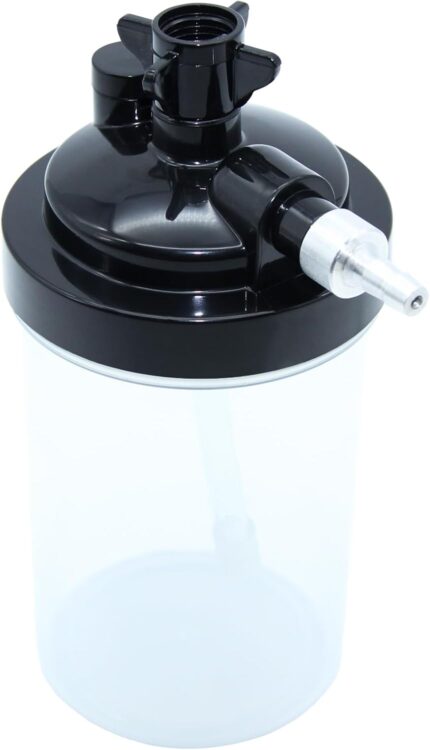 Upgraded Oxygen Humidifier Bottle for 5L or Less Concentrators, Universal Fit for Philips,Yuwell, MICITECH,Spiral-Type Interface, Metal Check Valve with Backflow Prevention & Fire Isolation