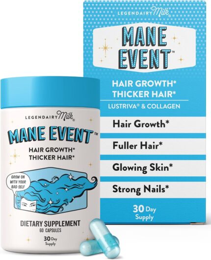 Legendairy Milk Hair Growth Vitamins for Women – Biotin for Hair Growth with Collagen & Lustriva, Hair Loss Products & Supplements for Thinning, Thicker, Fuller, Stronger Skin & Nails, Mane Event™