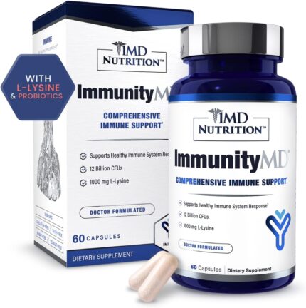 1MD Nutrition ImmunityMD – Immune Health Probiotic | Potent, Doctor-Selected Probiotic Strains with Prebiotic – Promote Overall Immune System Strength, Reduce Everyday Stress | 60 Capsules