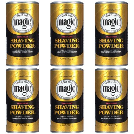 SoftSheen-Carson Magic Razorless Shaving for Men, Hair Removal Shave Powder, Helps Stop Razor Bumps Ingrown Hair, Fragrant, 6 Pack Magic Shave Gold 27 oz