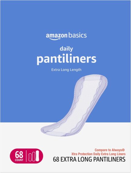 Amazon Basics Daily Pantiliner, Extra Long Length, Thin Feminine Pads for Women, Unscented, Leak Protection, Daily Use, 68 Count (Previously Solimo)