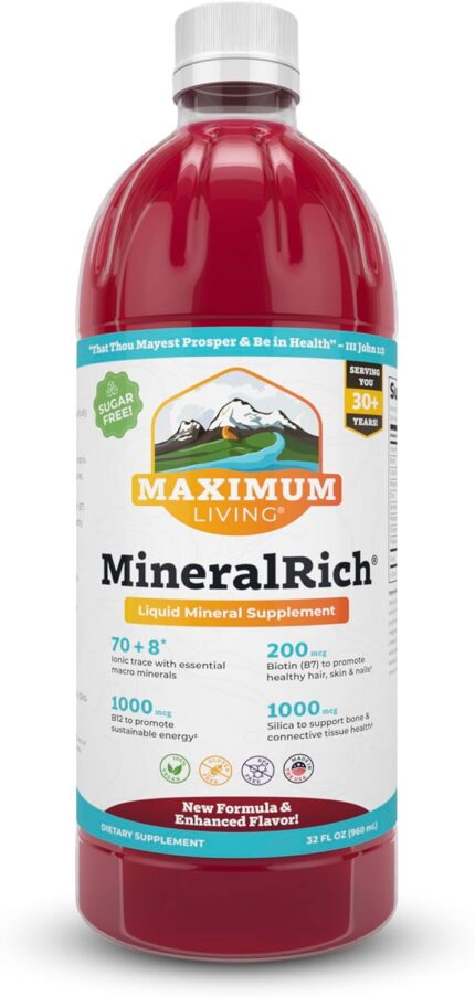 Maximum Living MineralRich – Minerals Supplement – Sugar Free Liquid Blend of Vitamins and Trace Minerals – 32 oz