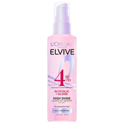 L’Oreal Paris Elvive Glycolic + Gloss High Shine Leave-In Hair Serum, Smooths Dull, Porous Hair Into High-Shine, Glossy Hair, 4.4 Fl Oz