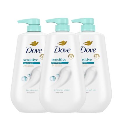 Dove Body Wash 3 Count Sensitive Skin For 24hr Lotion-Soft Skin Moisturizing Skin Cleanser Gentle Hypoallergenic Formula with No Sulfates No Parabens