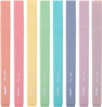Mr. Pen- Aesthetic Cute Pastel Highlighters Set, 8 pcs, Chisel Tip, Candy Colors, No Bleed Bible Assorted Colors