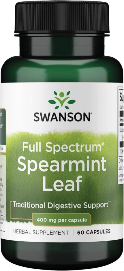 Swanson Spearmint Leaf (Mentha Spicata) – Full Spectrum Herbal Supplement Supporting Digestive Health & Mild Stomach Issues – Natural Formula Supporting Health & Wellness – (60 Capsules, 400mg Each)