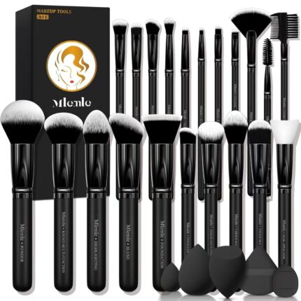 Makeup Brushes Set, Mlemle Professional 25 Pcs Makeup Kit, Include Foundation Powder Blush Concealers Eye shadows 21 Pcs Makeup Brushes and 2 Powder Puff, 2 Makeup Sponge(B01-Black)