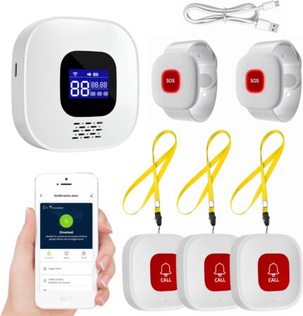Life Alert Systems for Seniors No Monthly Fee, App-Controlled Caregiver Pager, Medical Alert Systems for Seniors LED Number Display 2Call Button 1Receiver(Only Supports 2.4GHz Wi-Fi)