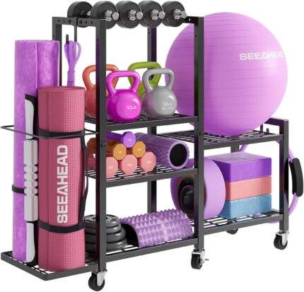 Multi-Functional Home Gym Storage Rack – Yoga Mat Storage Rack, Dumbbell Weight Rack & Workout Equipment Storage with Heavy-Duty Steel Construction for Gym Fitness Organizer