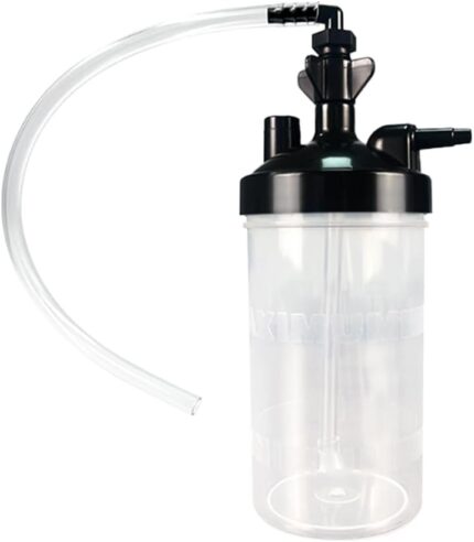 Oxygen Humidifier Bottle for 1 pk & Right Angle Bottle Elbow & 12” Adapter Tubing -Lightweight Portable Plastic