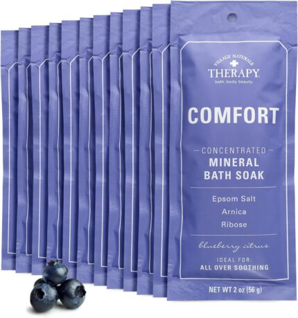 Village Naturals Therapy, Comfort Concentrated Mineral Bath Soak, Blueberry Citrus, 2 Oz, Pack of 12