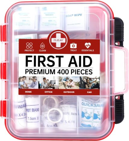 TLIEAO 400 Pieces All-Purpose First Aid Kit – Organized Dual-Layer Wall – Professional Medical Kit for Home, Car, Camping, Travel, Office, Outdoor, Business & Sports