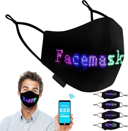 Halloween Decoration Light Up DJ Party Led Glowing Rave LED Party Maskes Programmable Bluetooth APP DIY Black, 15*23