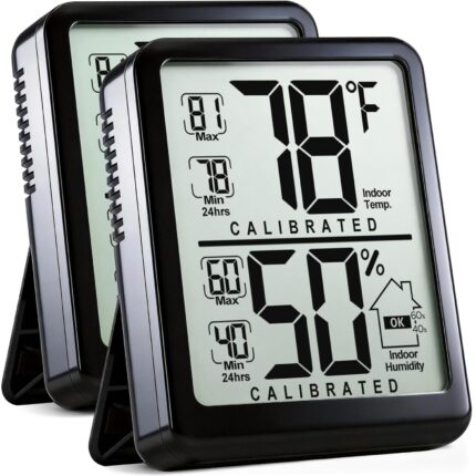 Antonki 2-Pack Room Thermometer, Digital Small Hygrometer Indoor Thermometer Humidity Gauge, Temperature Humidity Meter with Max/Min Record Monitor Sensor for Home, Plants – Battery Included