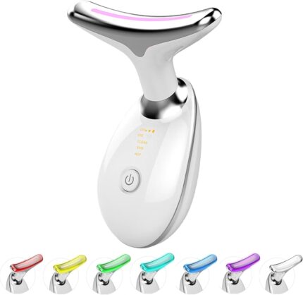 7 Color LED Neck Face Massager Red Light Care Beauty Device, Vibration & Heat Facial Sculptor Massager Tool for Anti-Wrinkle Skin Care, Ideal for Home Travel Gifts, White