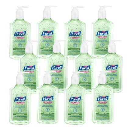 PURELL Advanced Hand Sanitizer Soothing Gel with Aloe and Vitamin E- 8 fl oz Pump Bottle (Pack of 12) – 3016-12-CMR