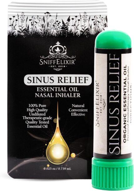 SniffElixir Nasal Inhaler for Sinus Relief, Made with Organic Essential Oils – Aromatherapy Stick with Peppermint & Tea Tree for Stuffy Nose & Congestion