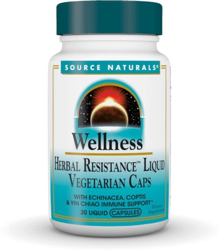 Source Naturals Wellness Herbal Resistance Liquid Immune Defense Supplement & Immunity Booster with Echinacea, Elderberry & Yin Chiao* – 30 Vegetarian Capsules