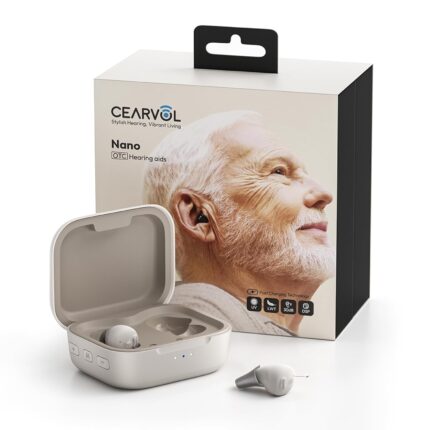 Nano Case Control OTC Hearing Aids Rechargeable, 3 Hearing Programs Feedback Cancellation Noise Reduction 54 Hours Battery Comfort-Fit ITC Design, Starlight Color