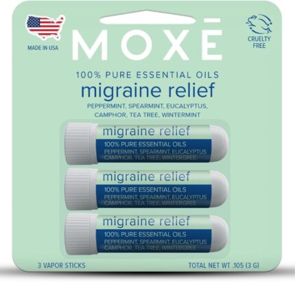MOXE Migraine Relief Nasal Inhalers, Essential Oils for Headaches & Tension Relief, Portable Aromatherapy, Easy-to-Use, Pure & Undiluted, Peppermint, Spearmint, Eucalyptus, Tea Tree, USA Made, 3 Pack