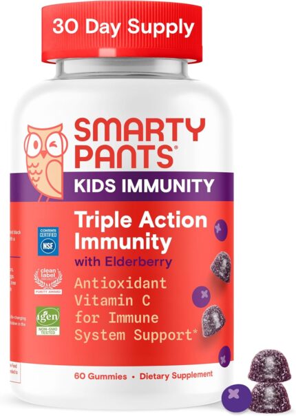 SmartyPants Kids Immunity Elderberry Gummies: Kids Immune Support Supplement, Vitamin C, Vitamin D, Vitamins B6 & B12 and Zinc, Gluten Free, Elderberry Flavor, 60 Count (30 Day Supply)