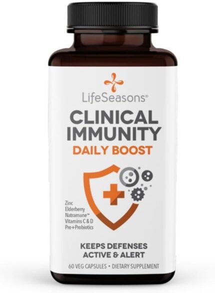LifeSeasons Clinical Immunity – Daily Boost – Immune System Booster – Pre + Probiotics – Increases Antibodies & Immune Cells – Elderberry, Zinc, Natramune & Vitamin C + D3-60 Capsules