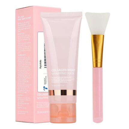 Collagen Night Wrapping Mask with Brush 2.53 fl.oz, Collagen Overnight Wrapping Peel Off Facial Mask Pack, Reduces Sagging & Dullness – Hydrolyzed Collagen For Glowing Skin, For Glass Skin