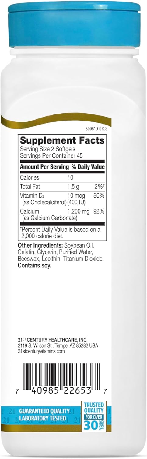 21st Century Calcium Plus D3 Liquid Filled Softgel, 1200 mg, 90 Count