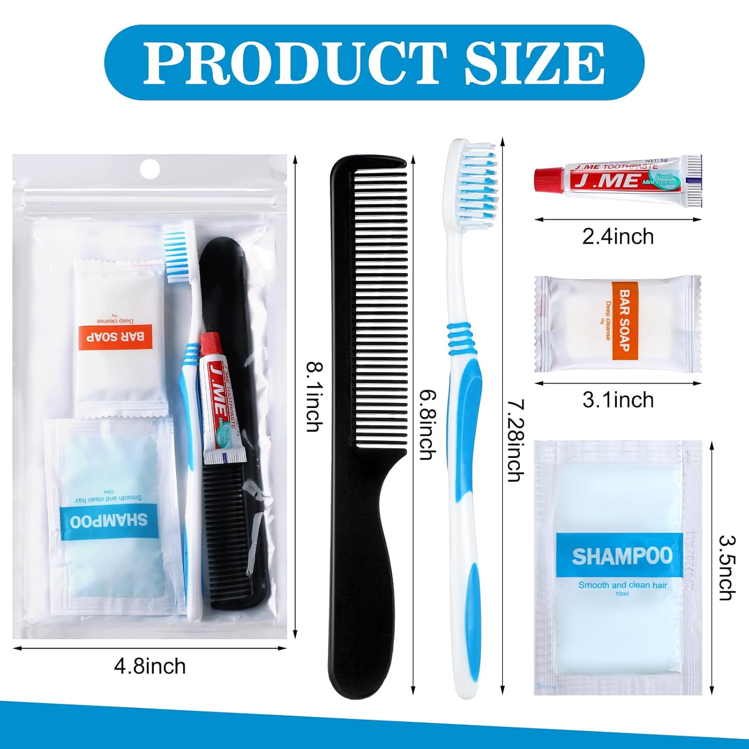 240 Pcs Basic Hygiene Kit: this travel toiletry kit is available in 48 sets that include 48 soap, 48 toothbrushes, 48 toothpastes, 48 shampoos, and 48 combs; It’s a suitable hygiene solution for large gatherings, hotels, homeless shelters, or disaster relief operations, providing sufficient supplies for everyone’s sanitation needs; Each kit is packaged in a sealing bag