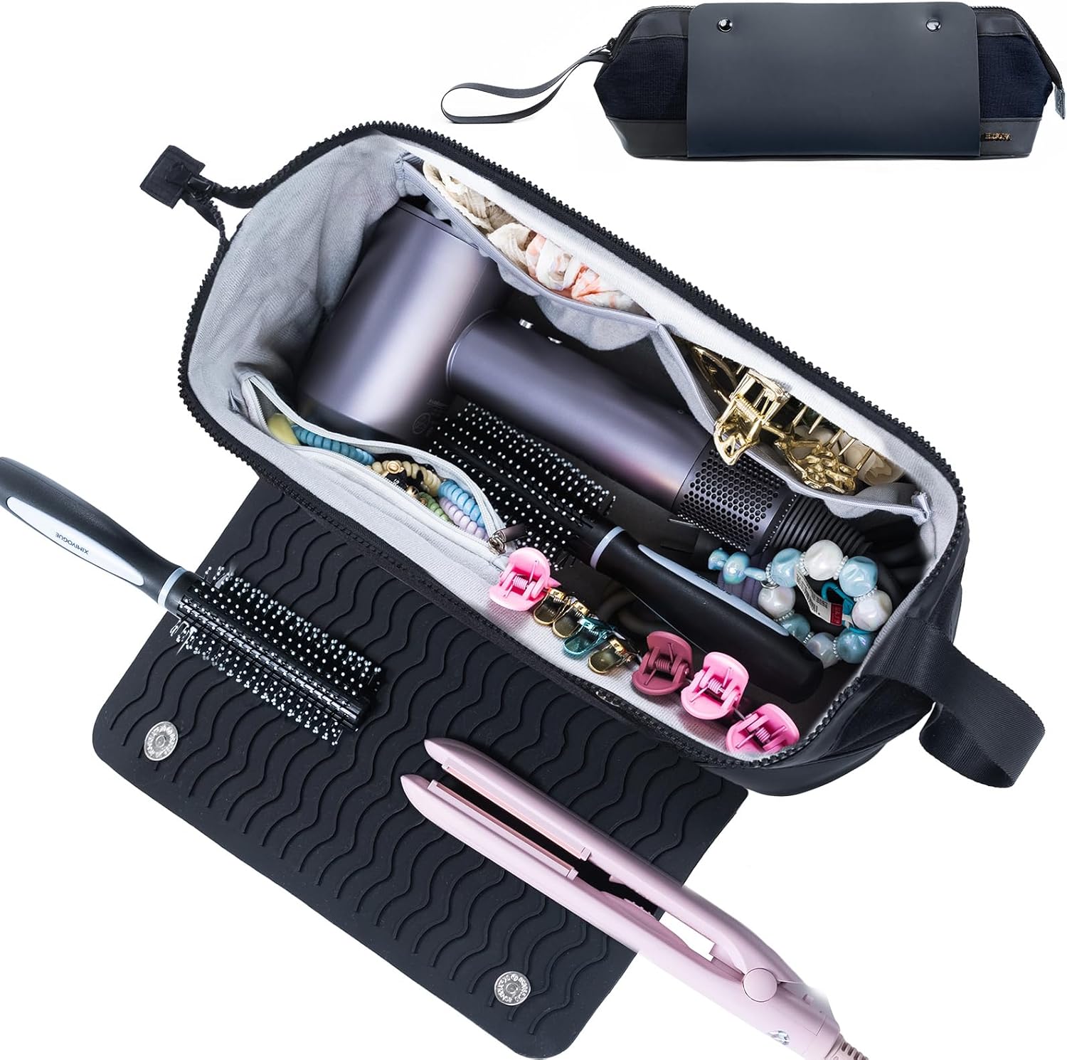 ELCUPA 2IN1 Hair Tools Travel Bag with Heat Resistant Mat for Flat Irons