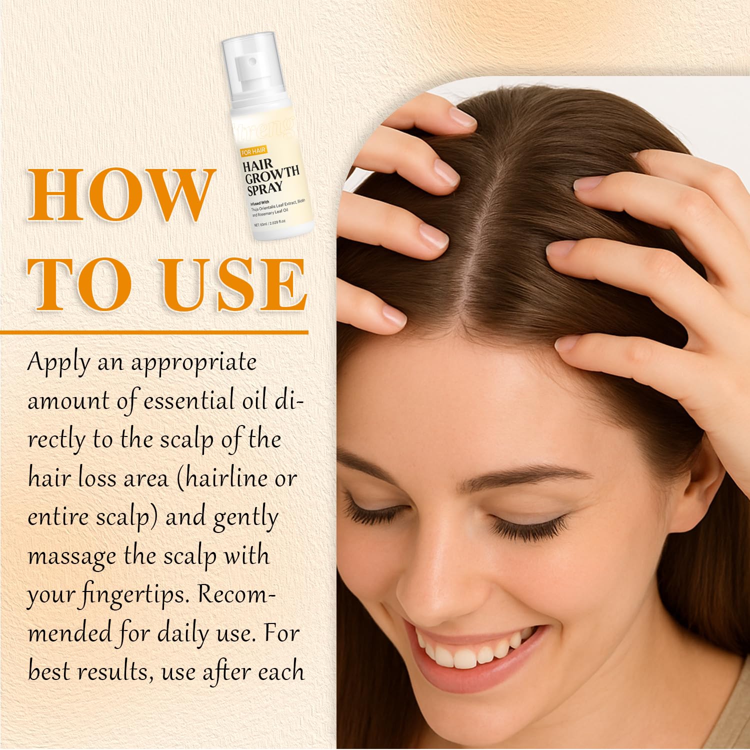 Lightweight, Fast-Absorbing & Non-Greasy:This refreshing scalp spray absorbs quickly without leaving buildup, helping improve softness, smoothness, and manageability for daily use.