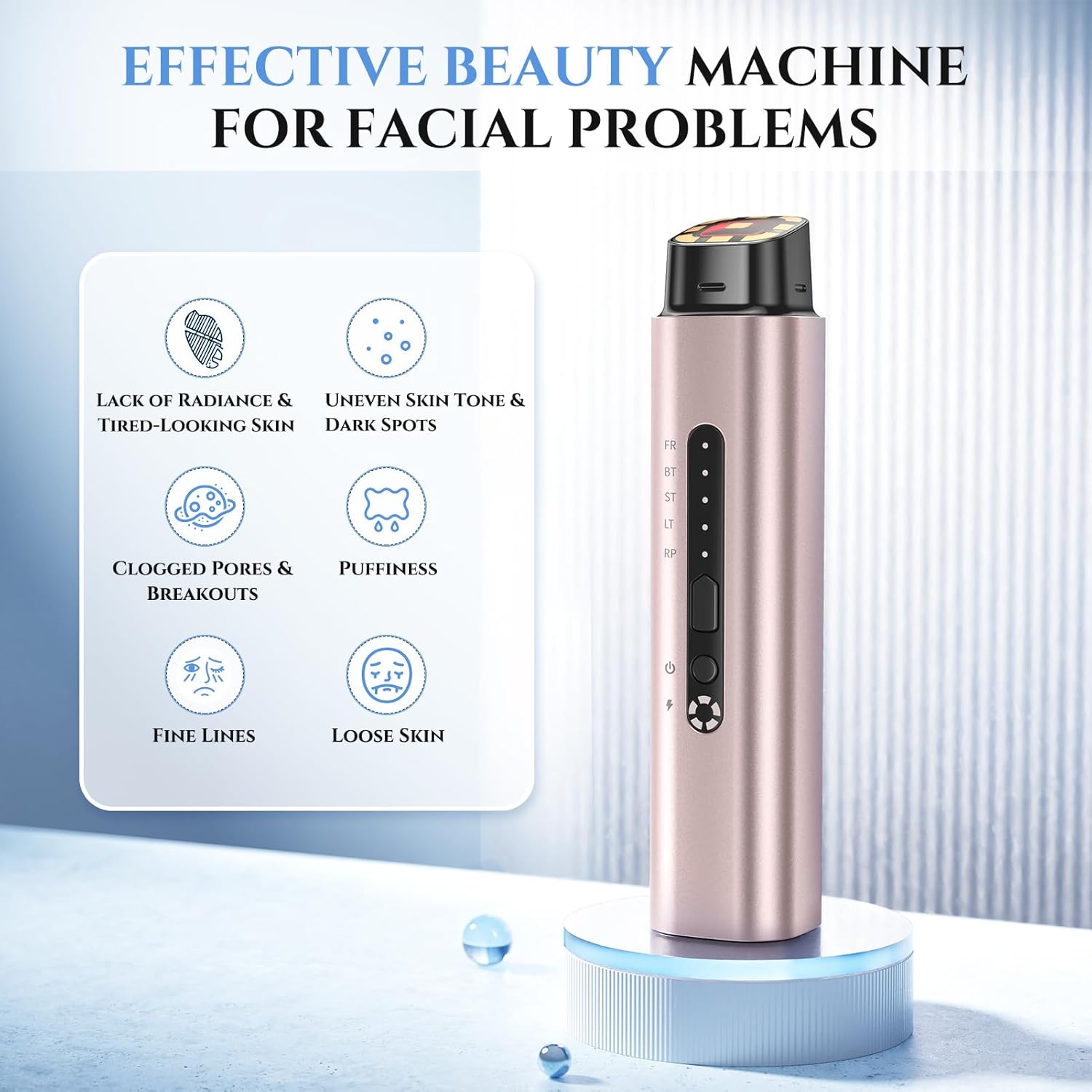 [Multi-Function Face Massager Beauty Device] Experience professional-grade skincare at home with this microcurrent face lift device. Combining microcurrent, heating, and 5-color led light therapy, this multi-function face device firms skin, minimize the appearance of fine lines, deeply cleanses, and promotes product absorption, resulting in an immediate lift and lasting firming.