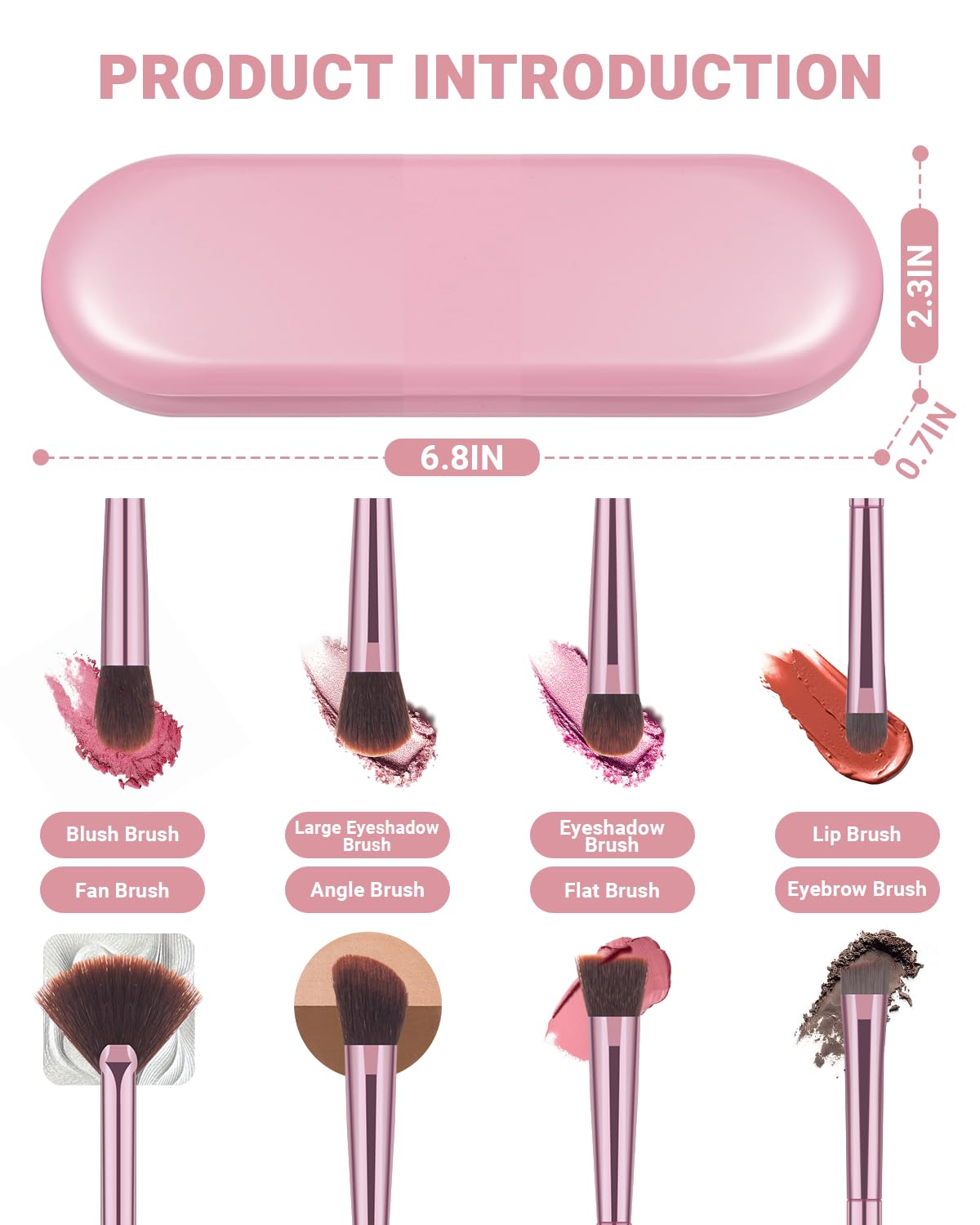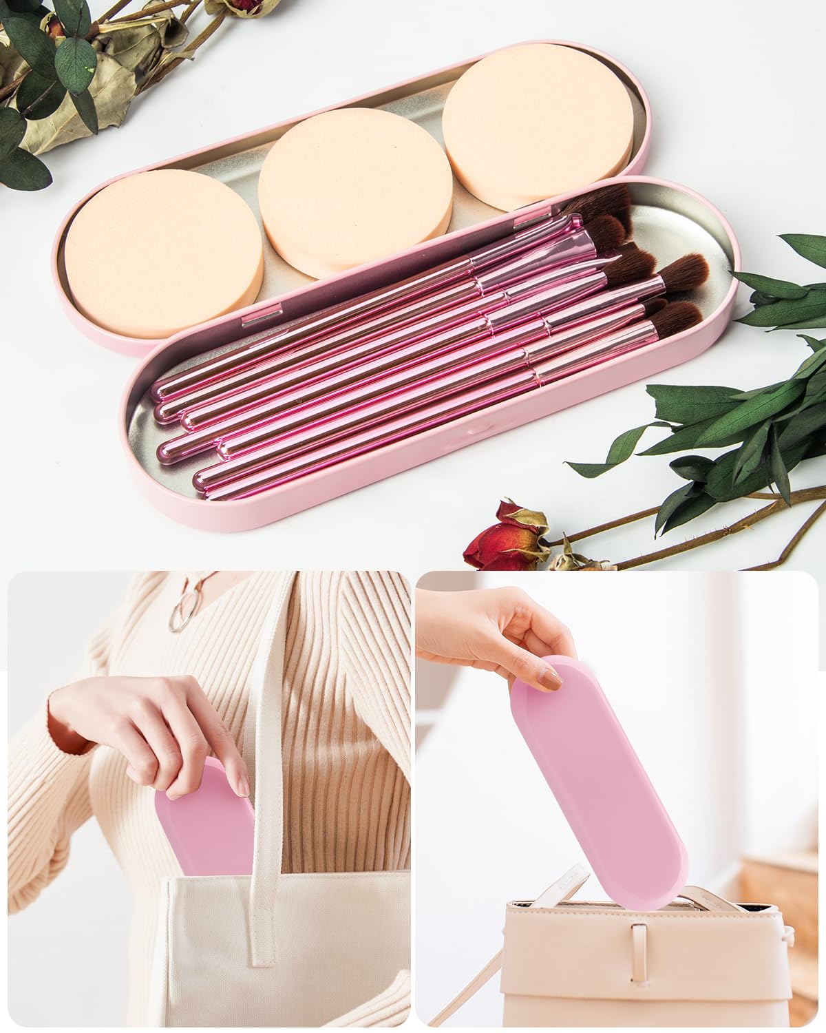 8Pcs Makeup Brushes Set Premium Eyeshadow Brush Professional Angled Eyebrow Brush Lip Brush Eyeshadow Brush Set With 3Pcs Powder Puffs and Pink Case 12 in 1