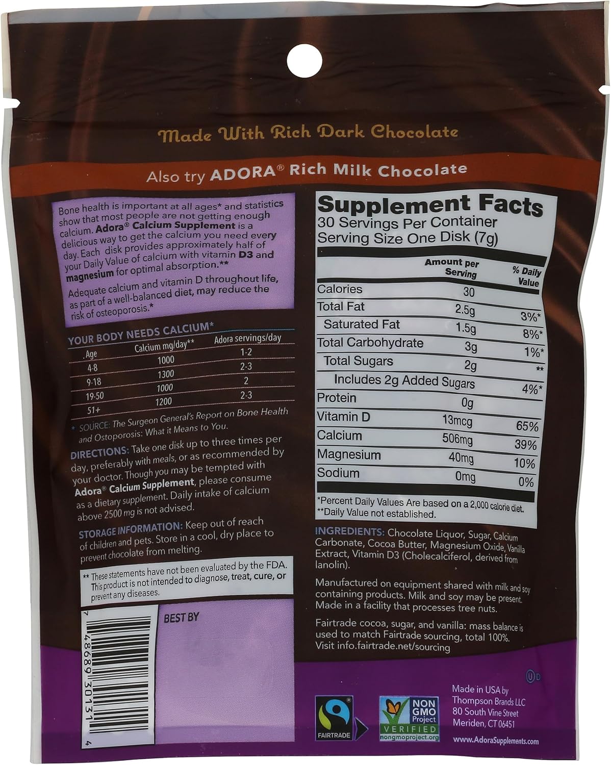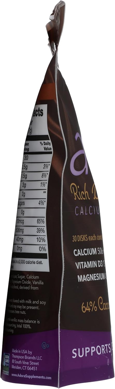 Adora Calcium Supplement Disk, Dark Chocolate, 30 Count – 500 mg