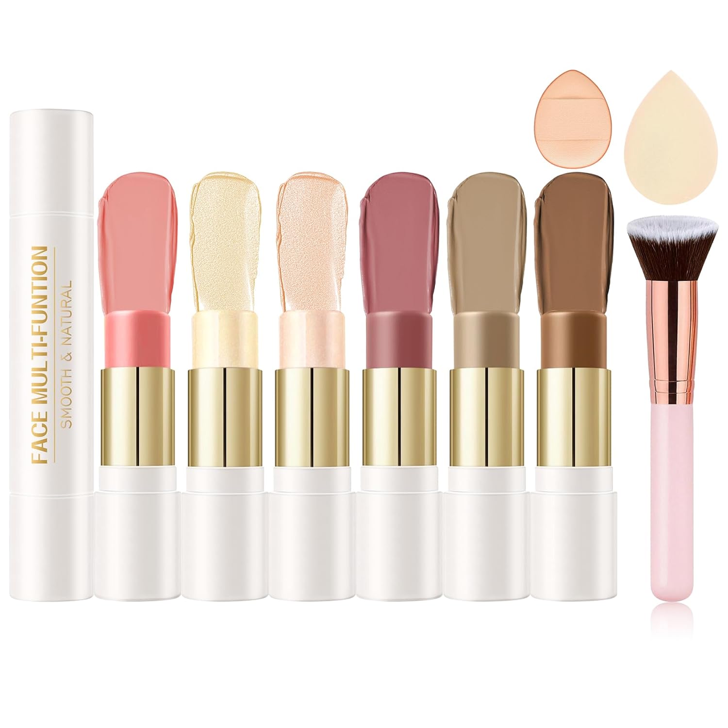 【6-Color Contour Stick】Double-ended contour stick set includes blush, contour and highlighter. It has a smooth and delicate texture that is easy to apply and blends perfectly with the skin, brightening the complexion and creating a natural and charming makeup. Easily apply to the cheeks, forehead, neck and chin to create a sculpted and defined facial contour