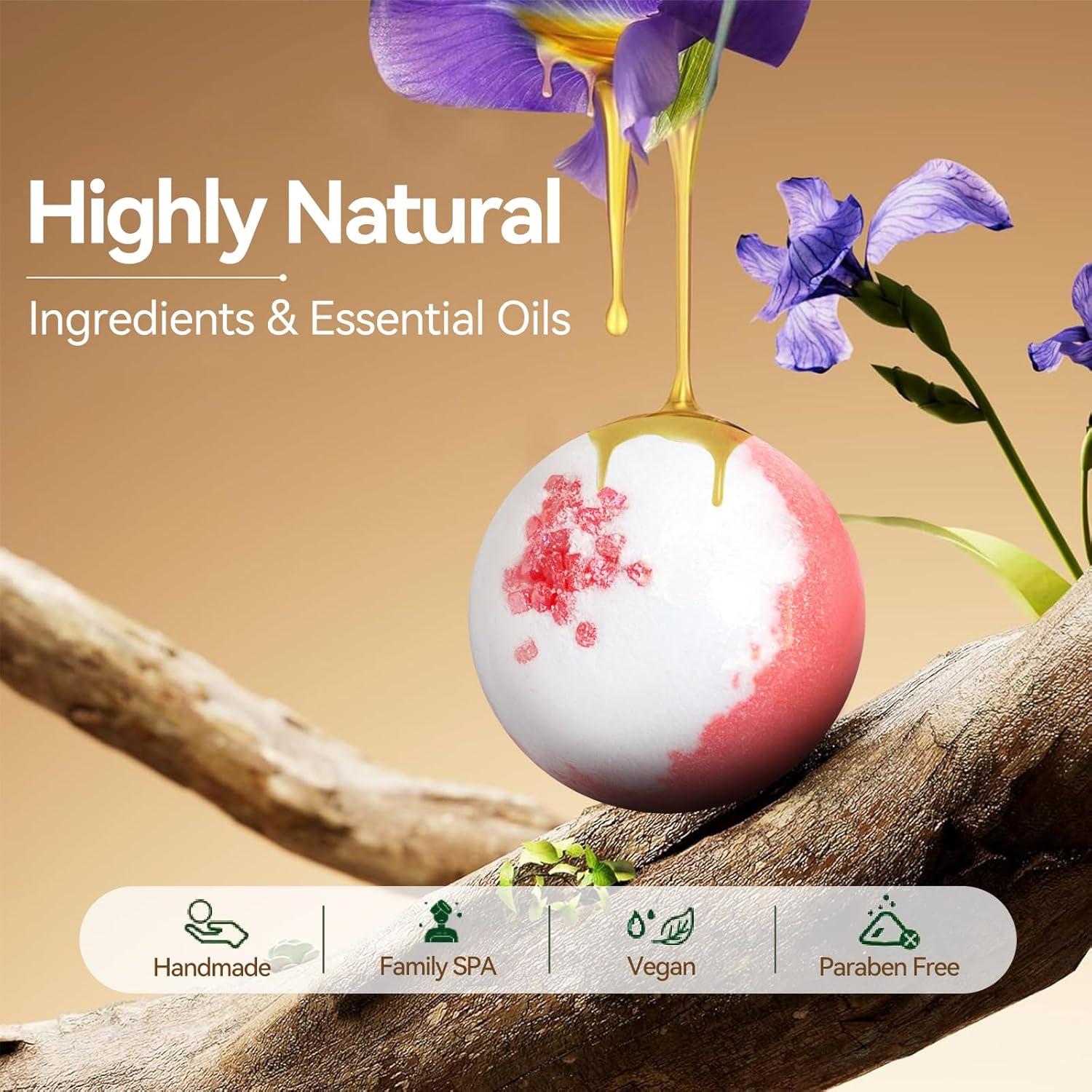 【Natural Ingredients】Each bath ball is crafted with essential oils, shea butter, Epsom salt, cocoa butter, and citric acid. Our moisturizing bath bombs won’t stain your tub! They’re also cruelty-free and humane.