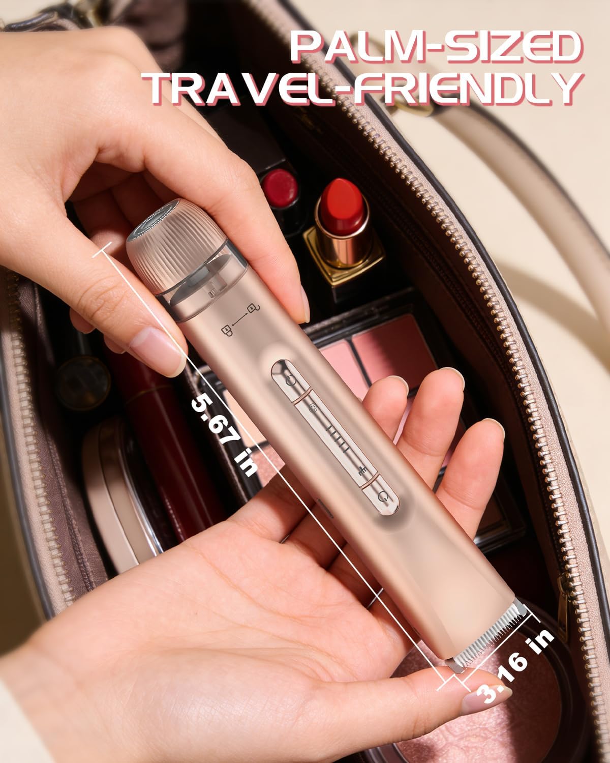 Travel-friendly & Space-saving: Featuring a compact design roughly the size of your palm, this shaver for women can be effortlessly stored in a makeup pouch or suitcase without taking up much space. It is conveniently portable for both home storage and travel, making it an ideal on-the-go grooming companion
