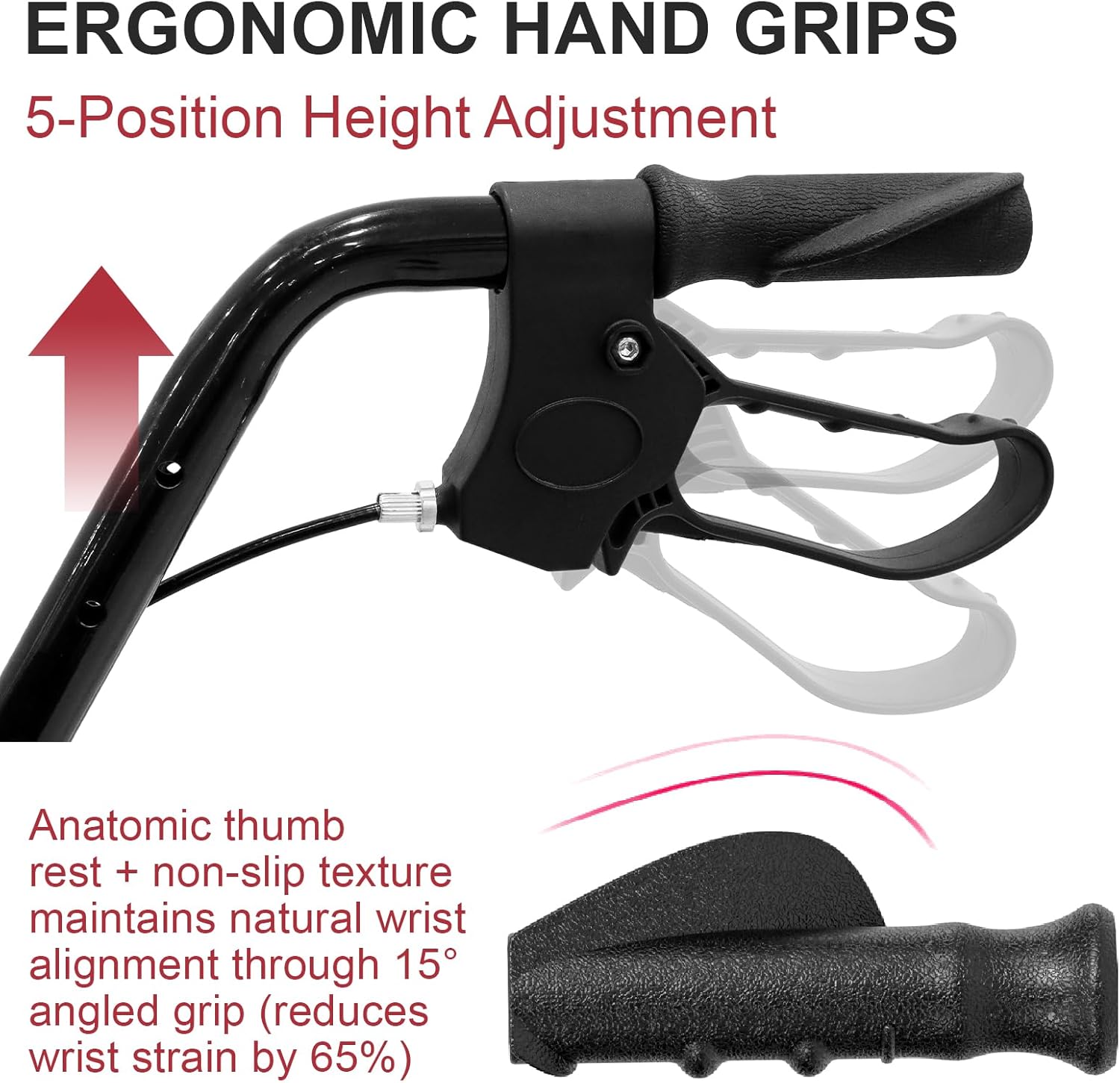 【5-Position Adjustable Ergonomic Handle】Instantly adapts from 5′ to 6′ user heights with single-button adjustment. Anatomic thumb rest + non-slip texture maintains natural wrist alignment through 15° angled grip (reduces wrist strain by 65%)