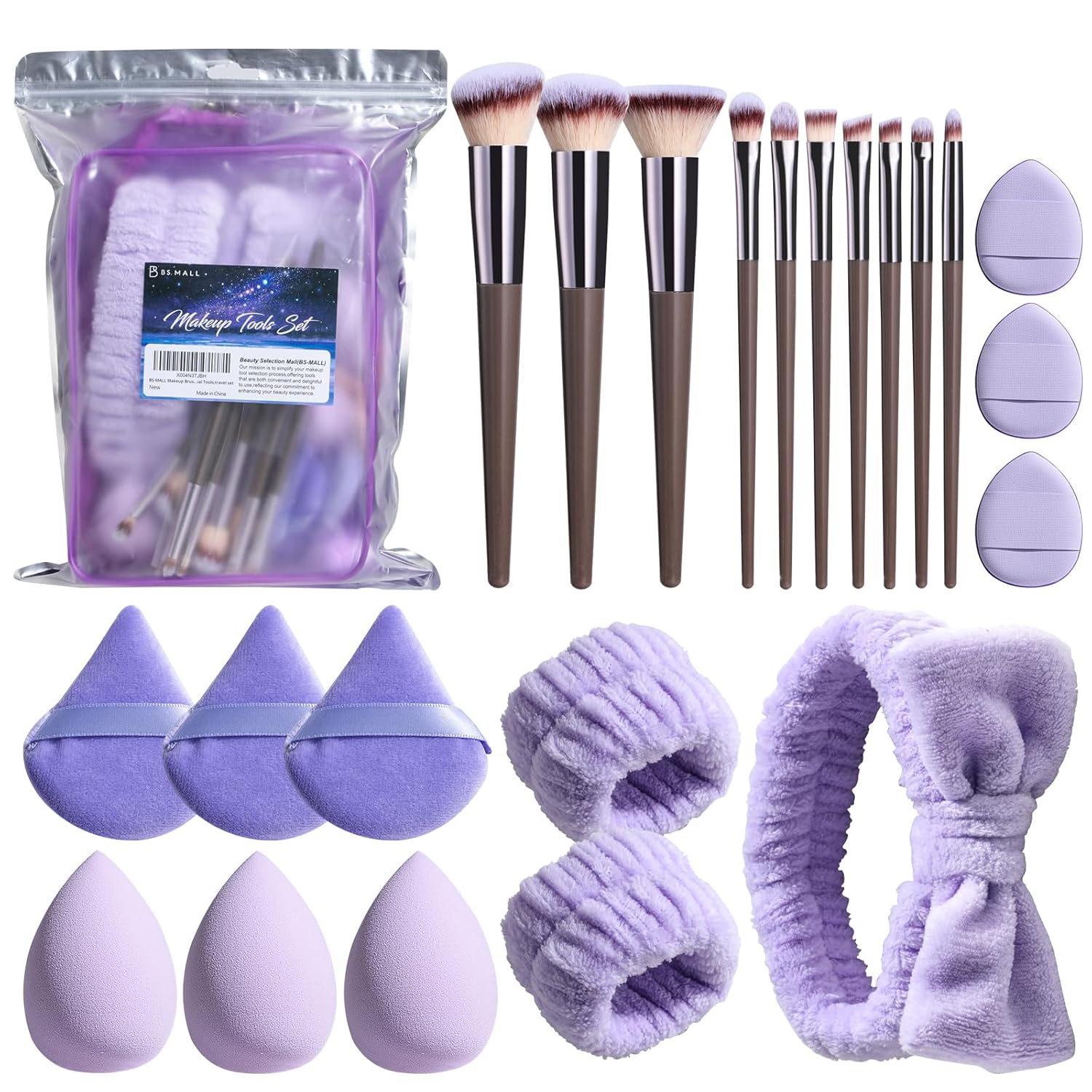 BS-MALL Makeup Brushes Set 23 Pcs with Finger Sponge – Essential Tools,travel set